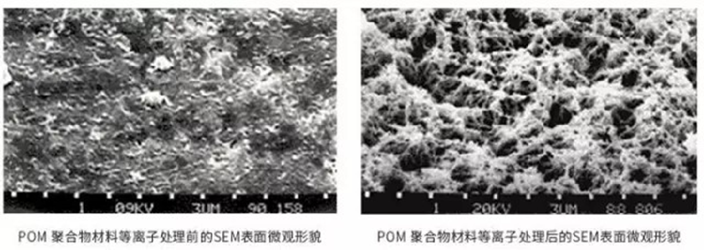 图5:POM聚合物材料等离子刻蚀前后的SEM图
